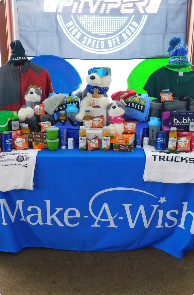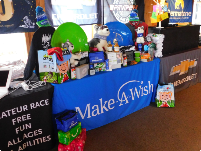 At every event, we set up a table full of incredible prizes donated by our sponsors. Throughout the day, we sell raffle tickets for participants and fans to enter for a chance to win something from the table.